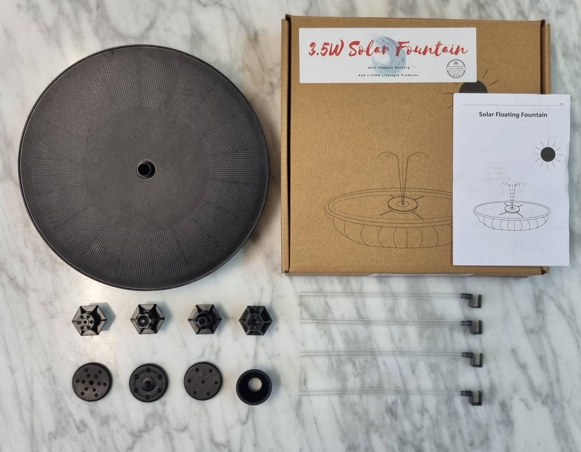 1. Remove the AUS LIVING Solar fountain from the packaging.
