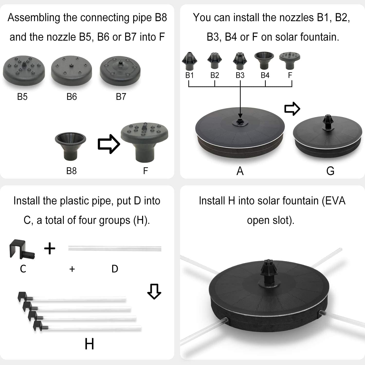 2. Select one of the many fountain spray patterns and attach spray nozzles onto solar fountain pattern. Attach anti-drift extensions if desired.